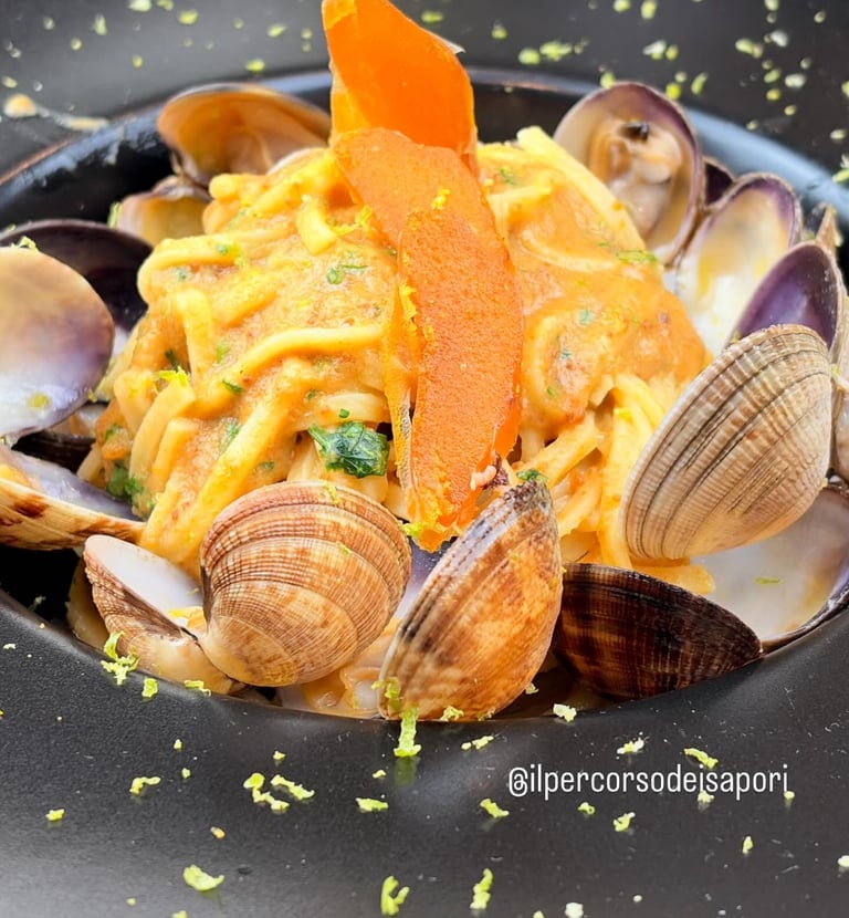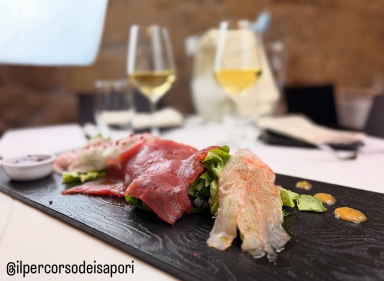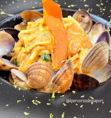 Ci sono incontri che nascono per caso e altri che sembrano scritti nel destino. La nostra storia appartiene a questi ultimi. Tutto ha inizio tra i tavoli di una cucina, dove lo Chef Andrea creava e due dei suoi più affezionati clienti, Alessandro e Simone, assaporavano. Quello che era nato come il piacere di ritrovarsi per “Grandi Mangiate” di pesce crudo, si è trasformato nel tempo in un legame profondo, fatto di stima reciproca e della stessa visione della tavola: un luogo di condivisione, scoperta e gioia. Da questa amicizia è nato “Il Percorso dei Sapori”. Non è solo un ristorante, ma il coronamento di un sogno comune. Il nostro menù è il racconto di questo viaggio: parte della purezza del mare, con i crudi che ci hanno fatto incontrare, per poi evolversi in piatti elaborati dove il pesce e la carne dialogano con l’intensità del tartufo. Ogni portata è una tappa di un cammino che abbiamo percorso insieme e che oggi vogliamo condividere con voi.